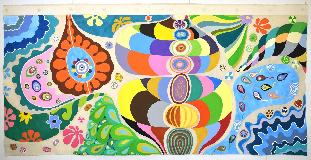 Ich habe einen Traum Öl auf Leinwand, 185x185 cm, 2003-2014 Panta rhei Gouache auf Baumwolle, 315x160 cm, 2025 Klicken Sie auf das Kunstwerk, um Details anzuzeigen. 1 2 3 4 5 6